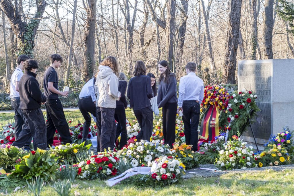 Schüler:innen des Wahlpflichtkurses Geschichte (9. Jahrgangsstufe) vom Georg-Herwegh-Gymnasium haben den Rundgang in mehreren thematischen Stationen über den Gedenkort in mehrtägigen Workshops entwickelt.